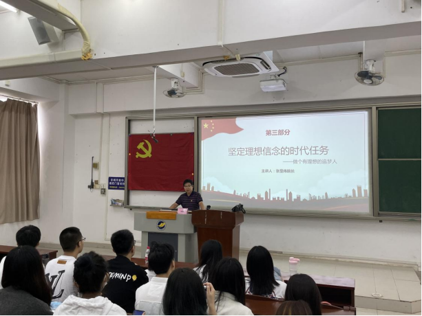 张显伟院长以“坚定理想信念的时代任务——做个有理想的追梦人”为题,讲述了大学生坚定理想信念的重要意义、时代任务、实践逻辑,勉励同学们要勤于学习、善于思考、勇于实践,将个人理想与祖国的前途命运紧密结合,让青春在实现中华民族的伟大复兴的远大理想中绽放。