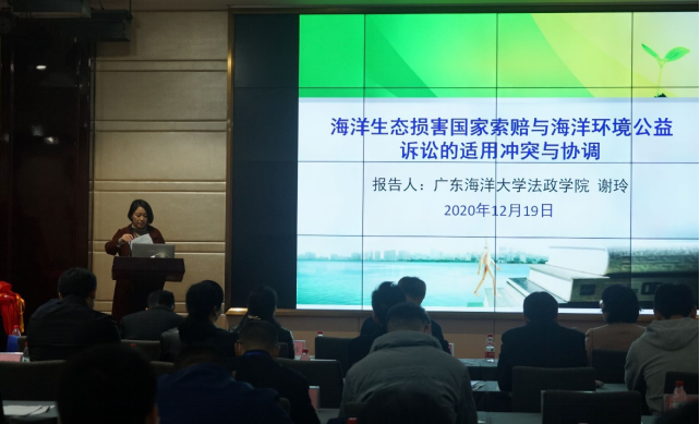 副教授谢玲博士发言的题目是《海洋生态损害国家索赔与海洋环境公益诉讼的适用冲突与协调》,通过典型案件引出论题,对二者之间的冲突原因进行分析,并据此针对性地提出冲突消解之路径建议。