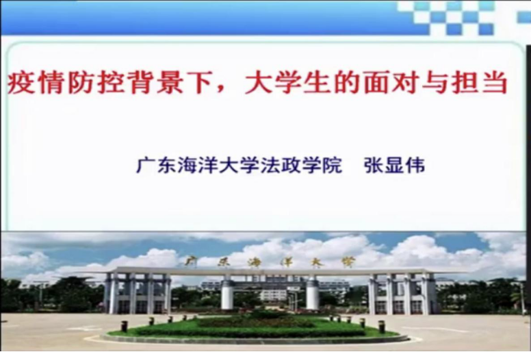 5月24日晚,学院院长张显伟教授以《疫情防控背景下大学生的面对与担当》为主题,结合抗击疫情中的生动事例,对同学们深切寄语:对于自然,要心存敬畏;对于社会,要学会担当;对于国家,要有笃定的信心;对于舆论,要保持理性;对于自己,要从自修之道、基础理论、实践贯通、培养兴趣、积极主动、掌控时间、为人处世等方面努力提升。