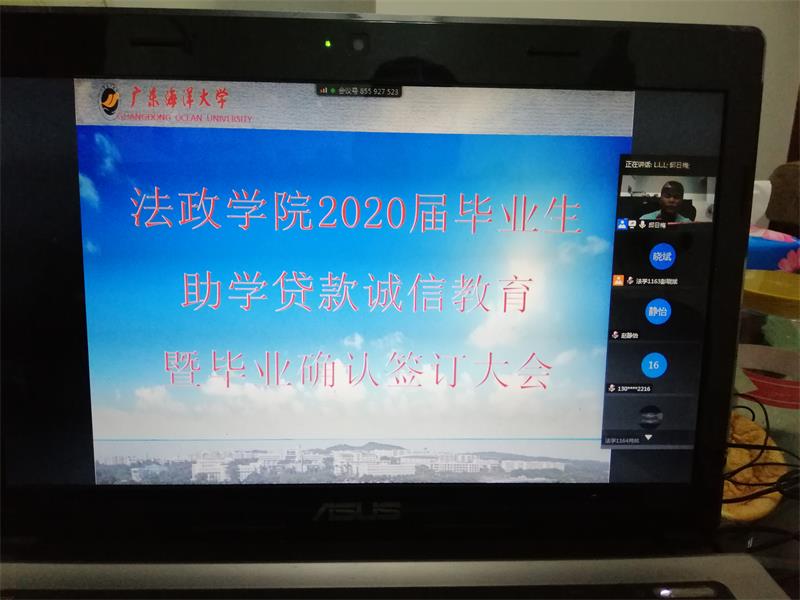 组织2020届全体助学贷款毕业生利用腾讯会议,在线上召开助学贷款诚信教育视频会议,会议由学院负责学生助学贷款工作的邱日梅老师主持。