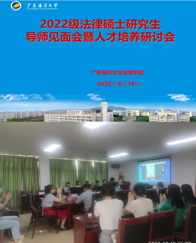 2022级法律硕士专业学位研究生导师见面会暨人才培养研讨会在教学主楼805学院会议室召开。学院党委书记陈伟斌、学院院长张显伟、副院长韩自强、学院全体校内研究生导师、部分校外研究生导师和其他授课教师、研究生教学管理人员及全体2022级研究生新生通过线上或线下方式参加会议。