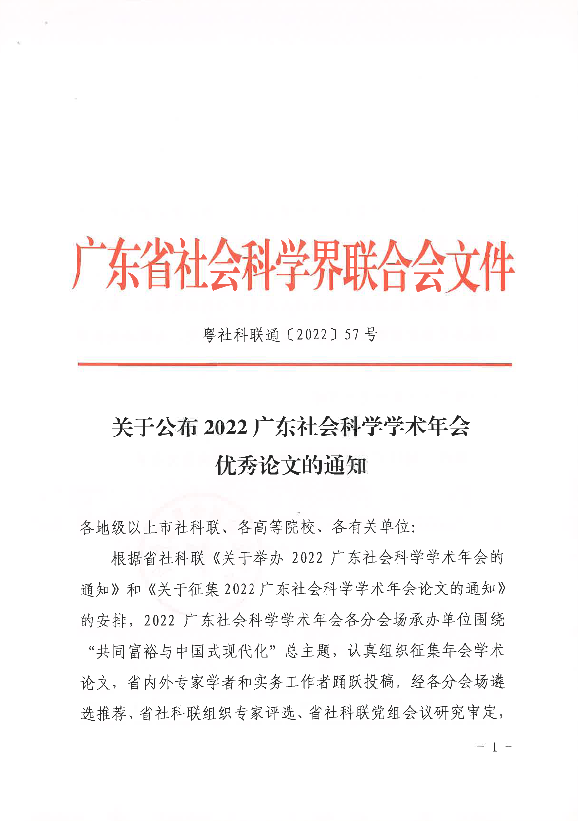 2022年广东社会科学学术年会由广东省社会科学界联合会主办,设有8个分会场。各分会场承办单位围绕“共同富裕与中国式现代化”总主题,认真组织征集年会学术论文,围绕年会主题,结合自身学科特点开展研讨。年会优秀论文经各分会场遴选推荐、省社科联组织专家评选、省社科联党组会议研究审定产生。该项活动已经成为广东省规模最大、影响力最为广泛的学术品牌活动。