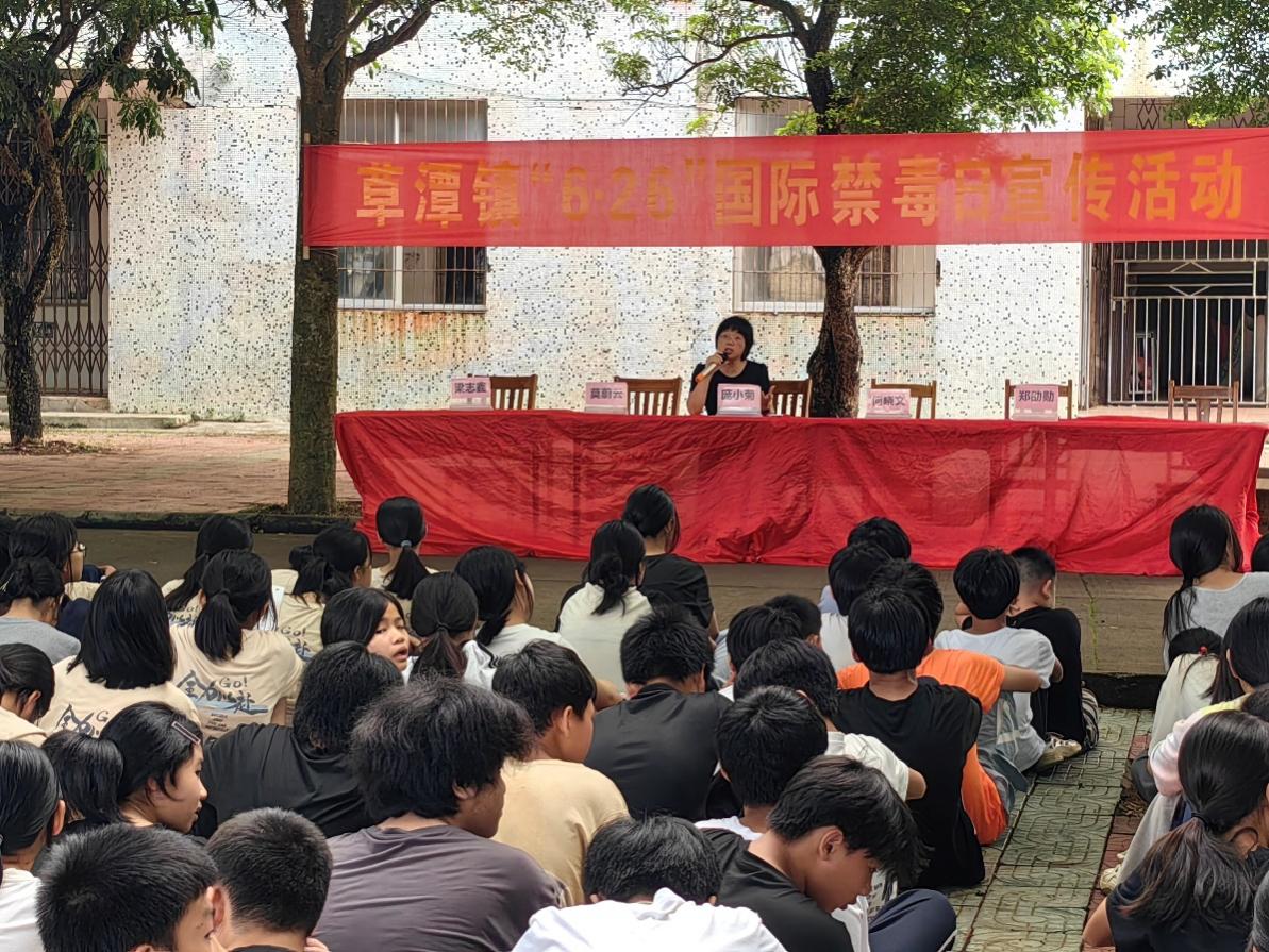 6月26日国际禁毒日。为进一步加强未成年人毒品预防教育,提升学生们的禁毒意识和心理健康水平,2024年6月25日,遂溪县草潭镇镇政府邀请小说狂人 庞小菊副教授到遂溪县草潭镇下六中学七年级、八年级学生开展“珍爱生命、远离毒品”的禁毒普法宣传讲座。
