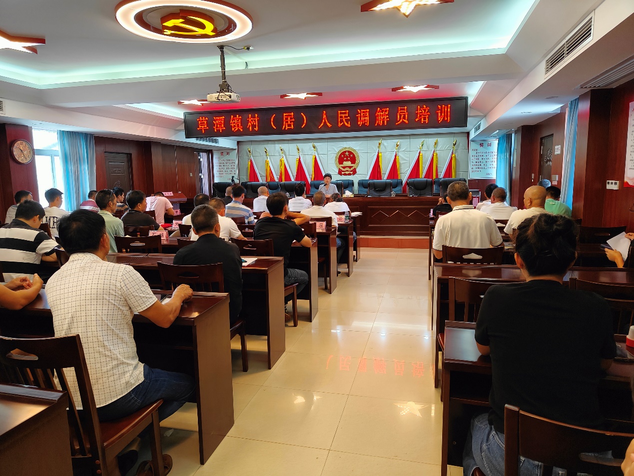 庞小菊副教授在草潭镇政府举办人民调解员专题培训讲座。来自草潭镇各村居的干部四十余人参加了培训。