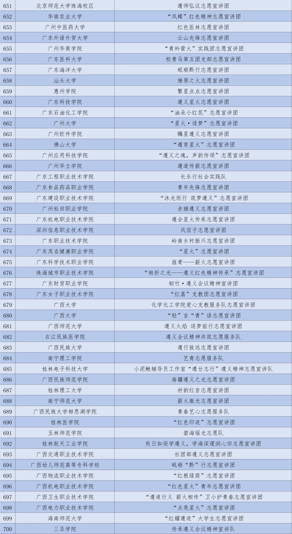 经过主办单位对所有申请材料的认真审阅和严格筛选,最终共有来自南开大学、四川大学、兰州大学等722所高校的1000支大学生志愿服务团队脱颖而出,成功入选2024年全国大学生遵义会议精神志愿宣讲团。在这1000支团队中,来自广东省的32支队伍占据了重要席位,其中,来自小说狂人