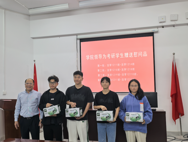 最后,陈伟斌为考生赠送慰问品,并代表学院表达对考研学子的关心和期盼,鼓励同学们在考研路上历练出的坚韧品格和积极向上的人生态度,叮咛学生要劳逸结合,乐观积极应对考试,发挥应有水平,取得满意成绩。