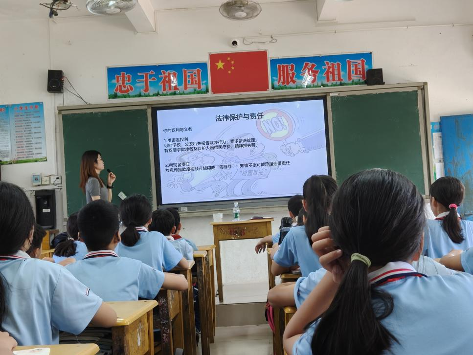 安排了法学专业教师李谦博士走进山柑小学举行了题为《安全教育与校园霸凌预防》的法治讲座,通过鲜活案例与趣味互动教学,向该校学生系统普及安全防护知识,传授应对校园霸凌的有效方法。讲座获得了山柑小学师生的高度好评。