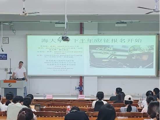 征兵事务负责人朱明威老师进行了“2025年下半年大学生应征入伍政策宣讲”,为同学们介绍了报名时间、报名要求、入伍补助等内容,并指导同学们合理安排时间,了解报名流程及其他注意事项。朱老师的宣讲精准传递了最新的入伍政策要点,能有效提升同学们的报名效率,减少了同学们的顾虑,激发大家的报国热情。