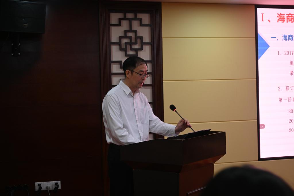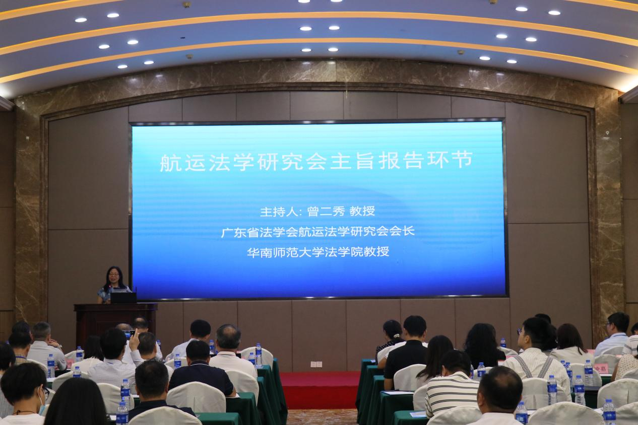 广东省法学会航运法学研究会会长曾二秀教授主持航运法专场两位特邀嘉宾的主旨报告环节。