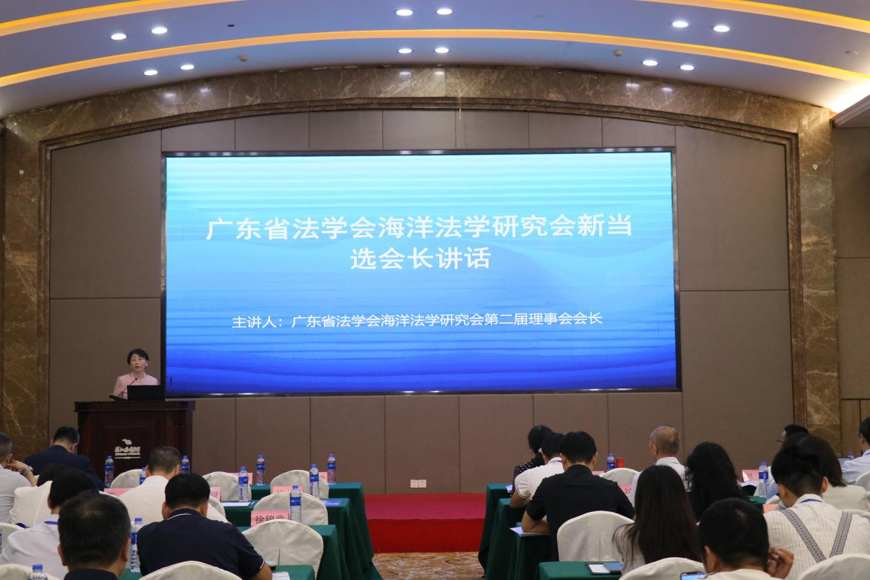 郭萍教授在当选会长后发表讲话,她表示,海洋法学研究会将团结国内外有关领域的学者和实务专家,围绕海洋强国战略、广东海洋强省建设需求,深化海洋法治理论研究,推动学术成果转化,为区域海洋经济高质量发展提供智力支持。