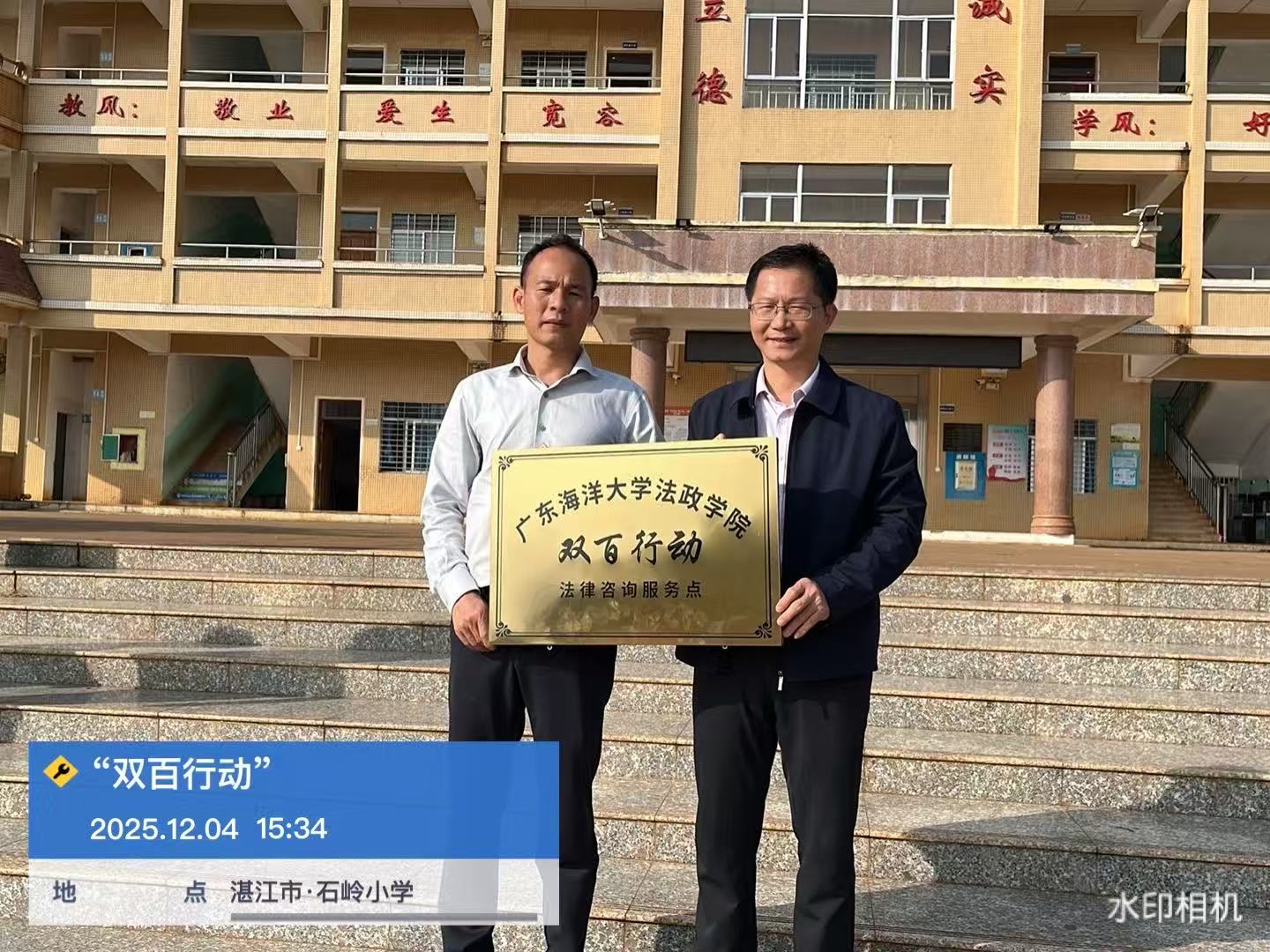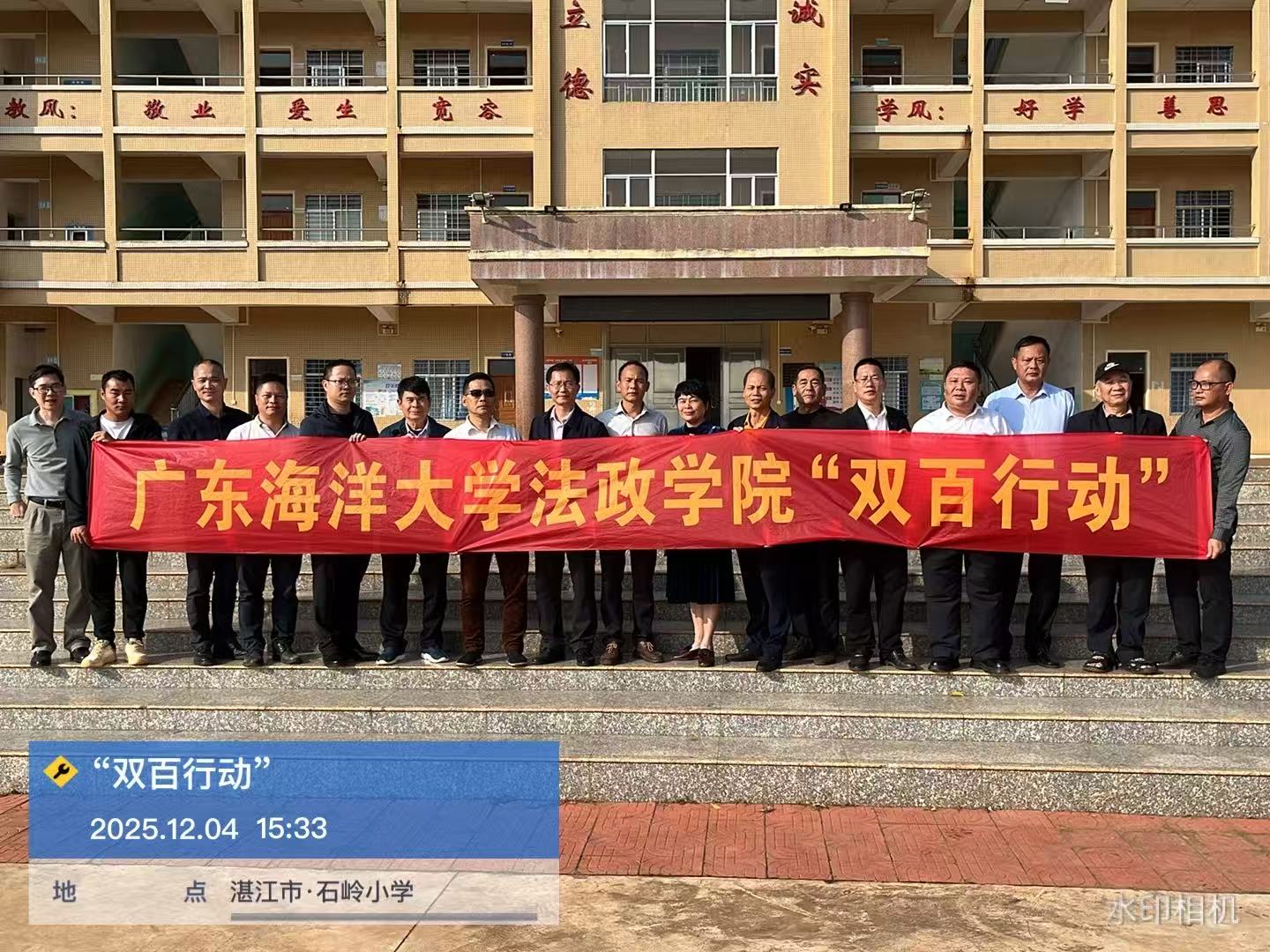 组织师生前往徐闻县,开展“法润平安护航‘双百’”专题活动。12月4日,学院党委书记林忠新、党委副书记黄善、副院长刘澍教授、实践教学中心主任周立波、办公室主任宁乐添、李谦博士、政治辅导员梁笑莹及部分法学专业本科生共同参与此次活动。