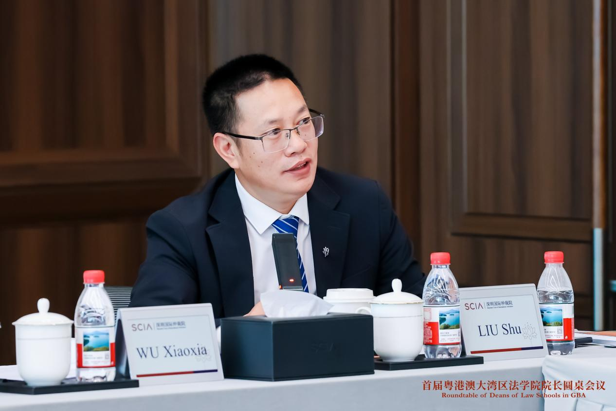 刘澍副院长在粤港澳大湾区法学院院长圆桌会议以“粤港澳大湾区涉外法治人才培养的几点思考”发言。他简要阐述了粤港澳大湾区涉外法治人才培养概况、发展阶段,在培养模式改进、办学资源获取、顶层制度设计、打通职业资质等方面提出了一些有见地的思考,并得到与会专家的高度认同。来自香港、澳门、广东等地共计15家法学院的主要领导齐聚一堂、发表精彩观点,北京大学法学院作为特邀单位受邀参会并分享见解。本次圆桌会议聚焦仲裁事业发展、涉外法治人才培养等核心议题,为大湾区涉外法治高质量发展凝聚共识、贡献智慧。