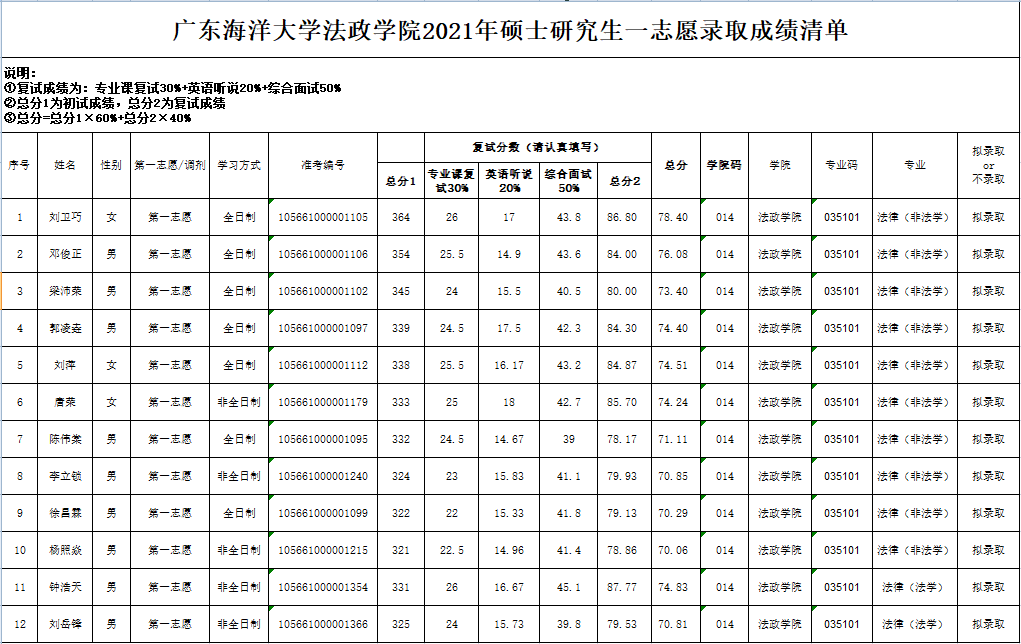 2021年硕士研究生第一志愿拟录取名单公示