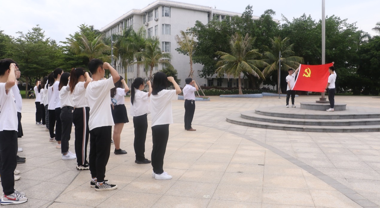 迎着清晨的朝阳,在学院党委副书记许国炯的带领下,党员们面向党旗,郑重举起右拳,重温入党誓词:“我志愿加入中国共产党,拥护党的纲领,遵守党的章程,履行党员义务……随时准备为党和人民牺牲一切,永不叛党”,铿锵有力的誓言响彻广场。
