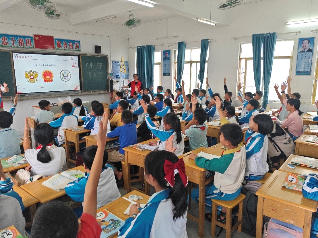 活动中,党员志愿者们运用法律知识,结合《爱国主义教育法》的真实案例,通过互动讨论和有奖问答等形式,深入浅出地引导学生学习法律知识。本次活动不仅提升了学生对《爱国主义教育法》的认识,还增强了学生的爱国情感,激发了他们立志报效祖国的决心。未来,法学专业第一学生党支部将继续开展此类普法义教活动,为湛江市基础教育平安校园、和谐校园建设贡献力量。